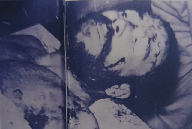 Το σώμα του γιου του διάτρητο από σφαίρες… Το σώμα του γιου του λογχισμένο… Ένα ματοβαμμένο κορμί, γεμάτο πληγές από τη μανία του εχθρού…Αρνείται να τον παραλάβει… Θέλει να τον πάει στο χωριό ΓΑΜΠΡΟ… όπως έφυγε…